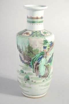 A CHINESE FAMILLE VERTE PORCELAIN VASE, painted with a figure stood within a vast landscape scene, 25cm high.