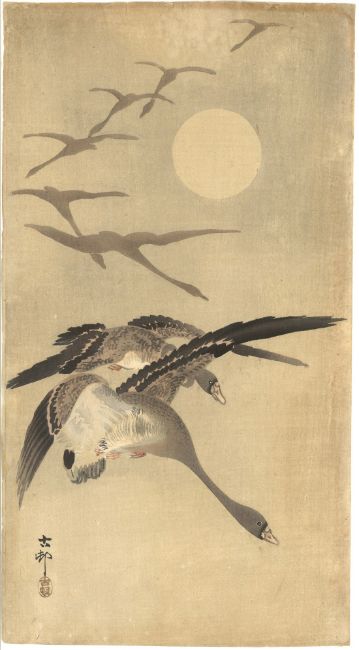 KOSON OHARA (1877-1945); BIRDS AND FLOWERS, two original early 20th century Japanese woodblock prints, (2).