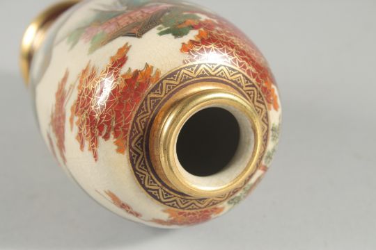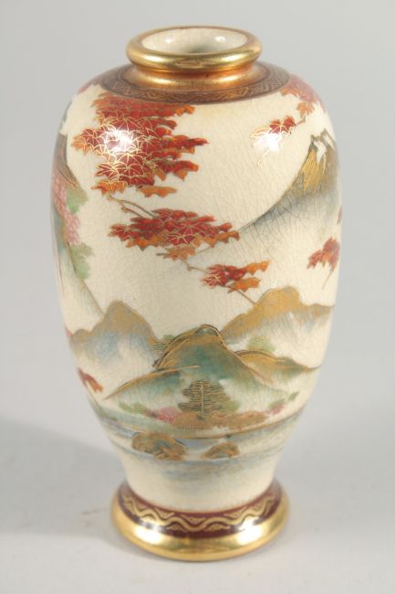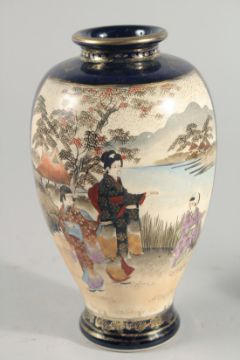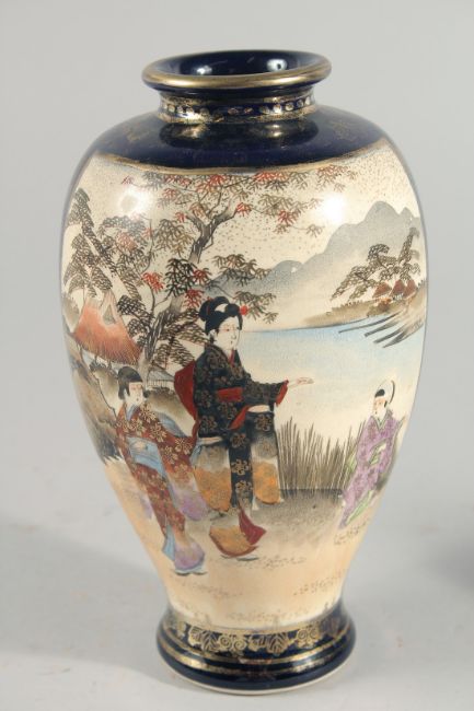 TWO JAPANESE SATSUMA VASES, the larger painted with panels of figures in a landscape, each with character mark to base, tallest vase 21cm high.