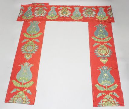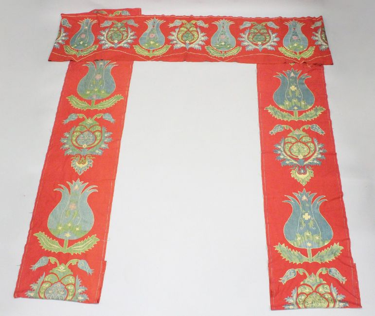 A THREE-PIECE SET OF UZBEK DOOR SURROUND EMBROIDERED TEXTILES, each piece embroidered with decorative floral motifs. (3).