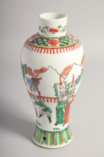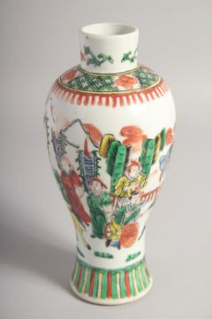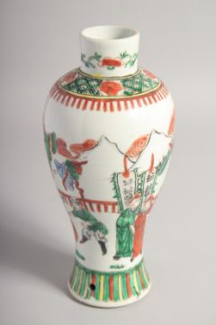 A CHINESE FAMILLE VERTE PORCELAIN VASE, painted with figures on horseback, character mark to base, 24cm high.