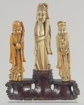 TWO CHINESE SOAPSTONE CARVINGS, one carved with foo dogs, the other of immortals on a soapstone base, (2).