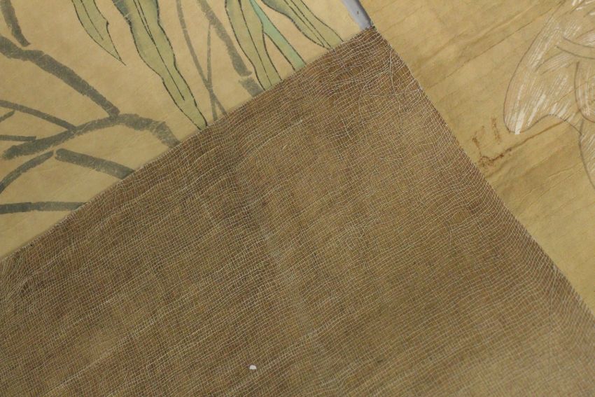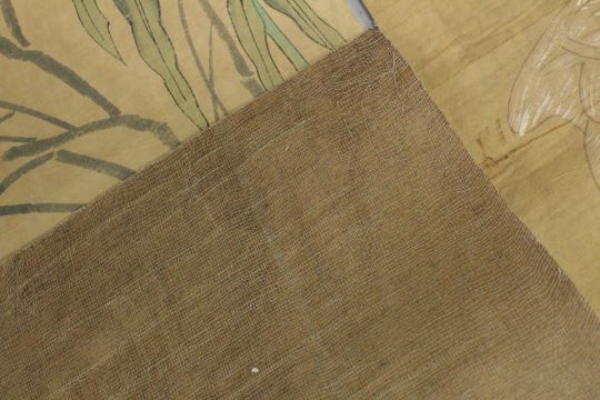 TWO CHINESE PAINTINGS ON PAPER, each depicting cranes and native flora, (2).