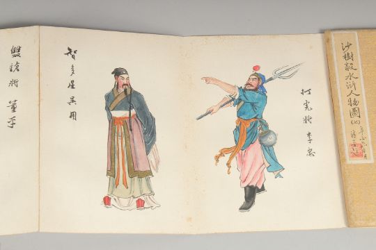 TWO GOOD CHINESE WATERCOLOUR BOOKS, with accordion binding; painted with various figures and inscribed, both with seal marks, each 18.5cm x 13cm, (2).