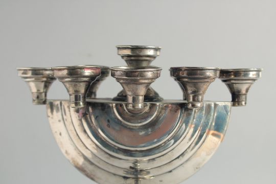 A GOOD JEWISH SILVER MENORAH on a circular base.
