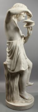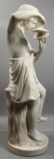 A FINE QUALITY ITALIAN MARBLE SCULPTURE OF A YOUNG CHILD playing cymbals,