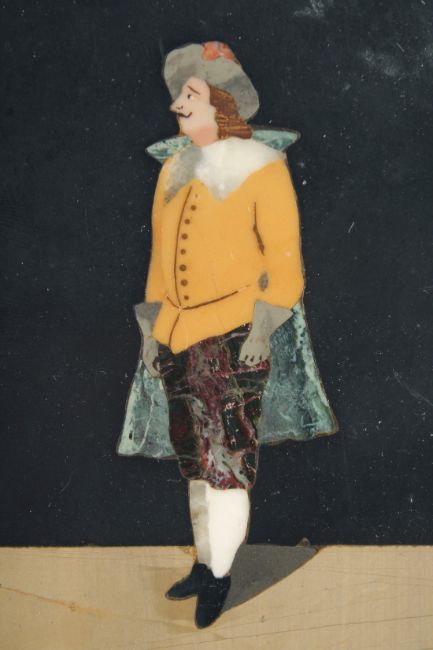 A 19TH CENTURY PIETRA DURA PANEL of a man.