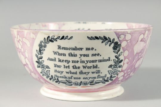 A SUNDERLAND PORCELAIN PINK LUSTRE CIRCULAR BOWL "Sailor's Farewell" Masonic.