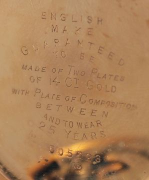 A GENTLEMAN'S DENNISON 10CT GOLD PLATED POCKET WATCH.
