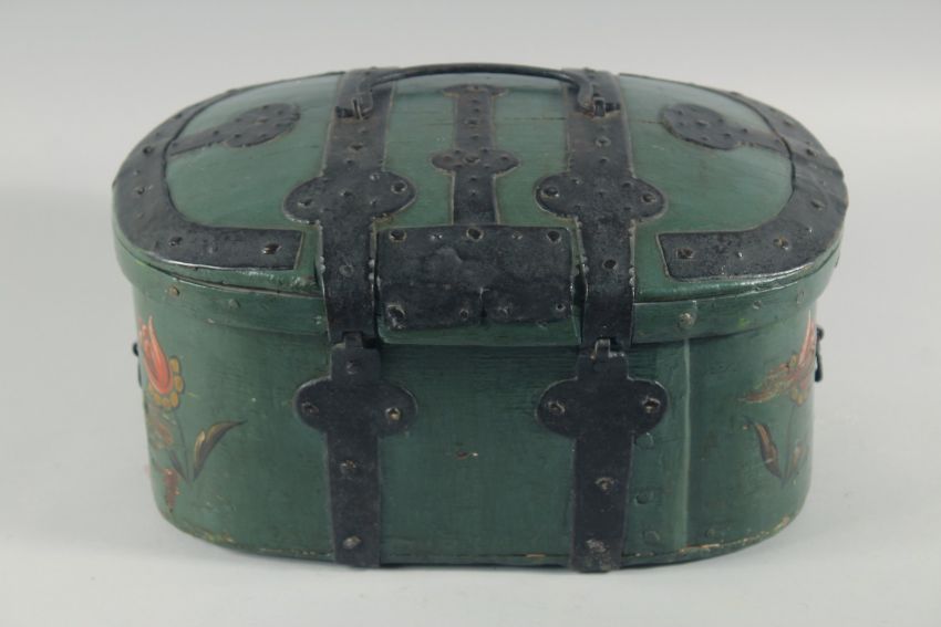 A SWEDISH IRON BOUND FOLK ART BOX with metal heart.