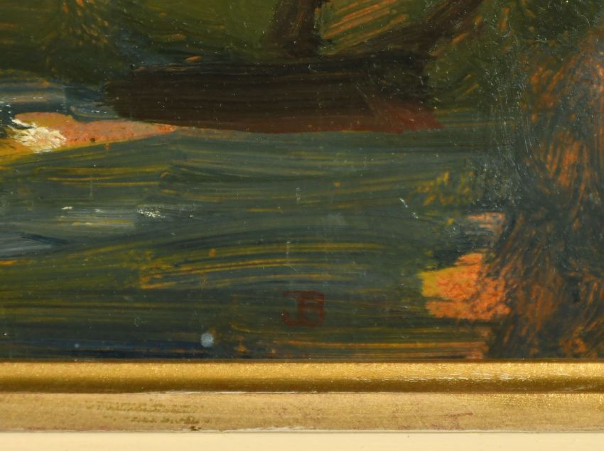 John Brown, (20th Century) Trees with a blue sky beyond, oil on board, signed with initials, 9" x 12", (20x30.5cm).
