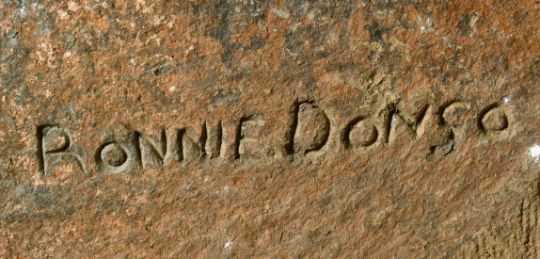Ronnie Dongo (b.1967) A carved stone sculpture of a cow and calf, signed, 7" high x 21" long by 17" deep (17.5x51x17cm).