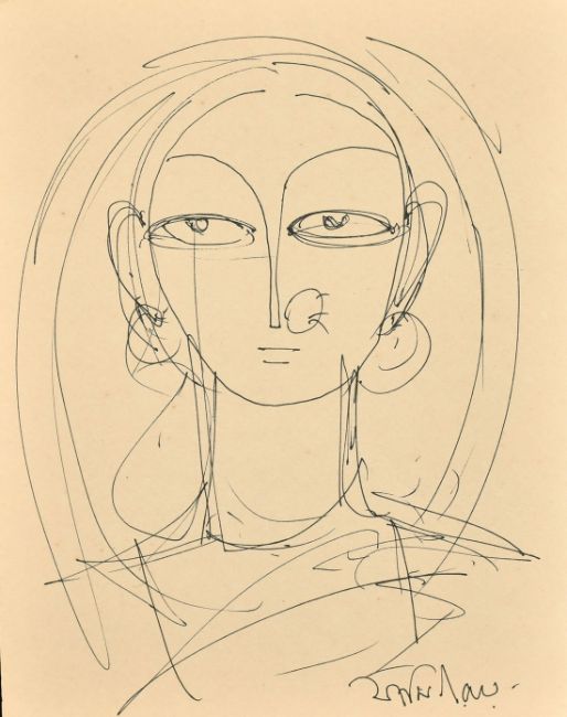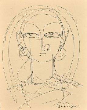 Jamini Roy (1887-1972) Indian, a head study of a female, ink, signed, 8.25" x 6.5" (21 x 16cm).
