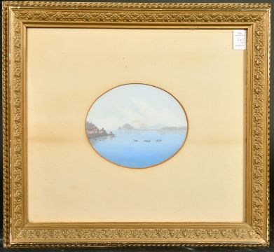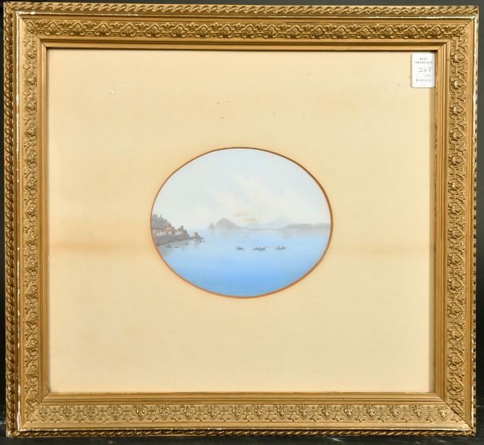 19th Century Neapolitan School, a pair of gouache scenes of traditional boats in a bay, each 5" x 7" (12.5 x 18cm), oval, (2).