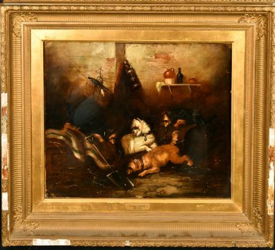 George Armfield (1808-1893) British, Terriers ratting in a barn, oil on canvas, Christie's stencil verso, 20" x 24" (51 x 61cm).