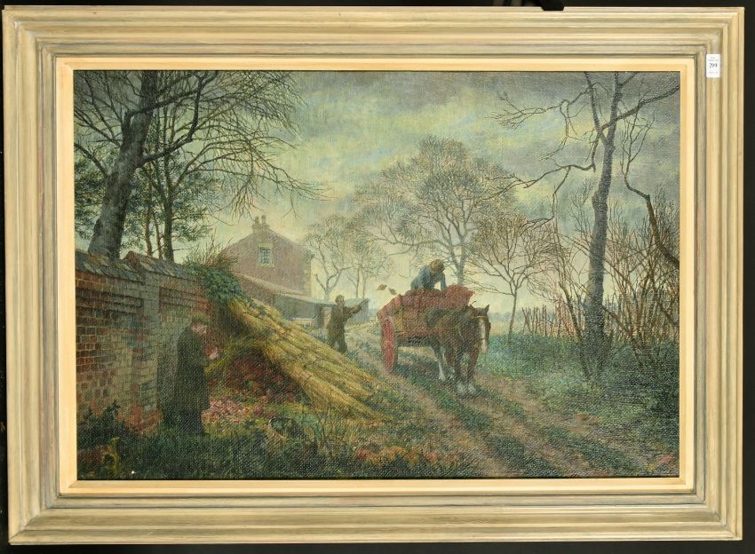 Mid-20th Century School, figures loading turnips in a horse and cart, oil on canvas, signed with initials R.S., 22.5" x 32.5" (57 x 83cm).