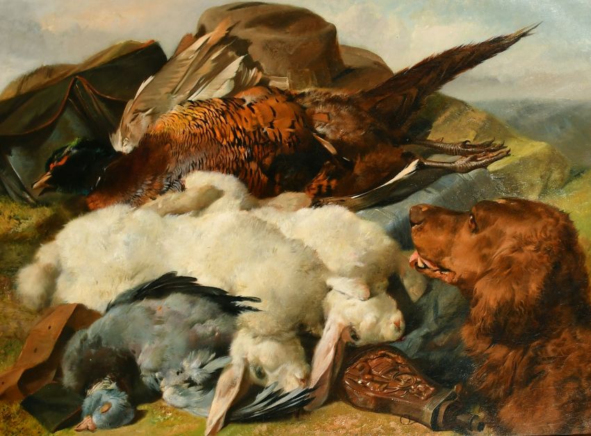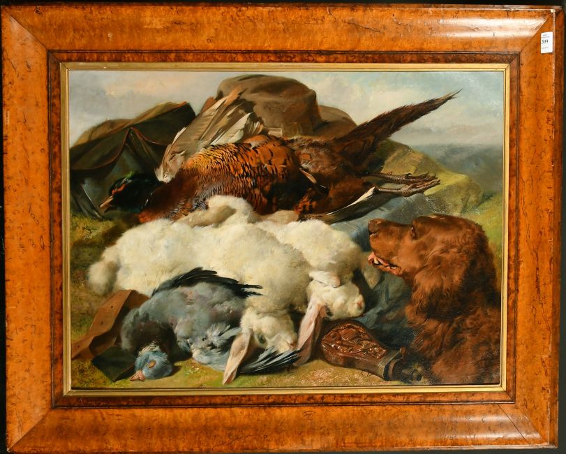 Herbert William Weekes (late 19th Century), The days bag, oil on canvas, signed and dated 1874, 20" x 30", (51x76cm) in a fine maple frame.