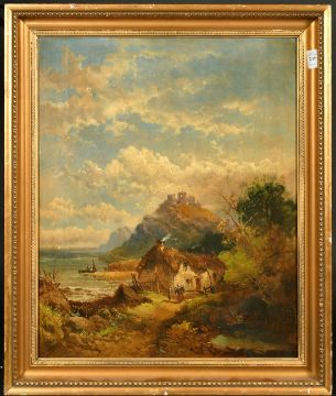 Joseph Horlor (1809-1887) British, female figure leaving a cottage by the coast, oil on canvas, signed, 22" x 18" (56 x 46cm).