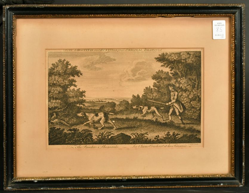 J. June, A set of four 18th Century line engravings of shooting subjects, each 6.5" x 10.5", (16.5x 26.5cm) (a/f) (4).