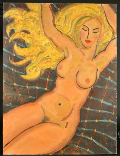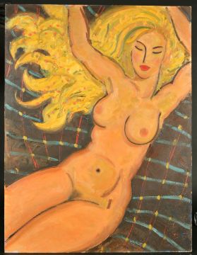 Kanwaldeep Singh Kang, signed Nicks (1964-2007) British, A blonde female nude, oil on board, signed and dated '98, 35.5" x 26.75", (90x68cm) (unframed), from the artist's studio collection.
