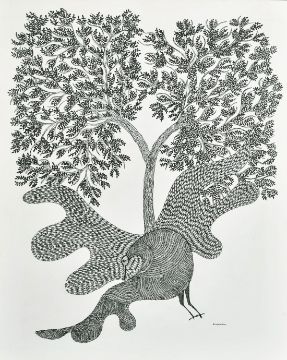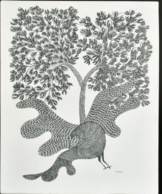 Ram Singh Urveti (b. 1970) Indian Gond Artist, a bird beneath a tree, ink on paper, signed, 14" x 11" (35 x 28cm), unframed.