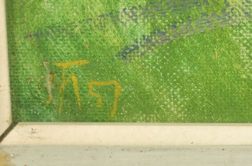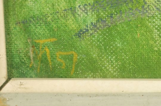 Margaret Thomas (1916-2016) British, 'The Appelbee's House', oil on board, signed and dated 57, 20" x 30" (51 x 76cm).