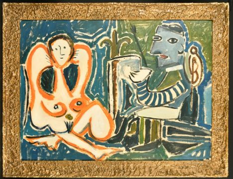 20th Century, Abstract study of an artist and model, oil on canvas, 22"x 30", (56x76cm).