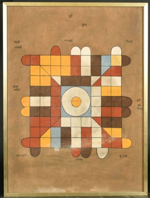 A 20th Century Indian Tantric painting of geometric form, 28" x 21" (71 x 53.5cm).