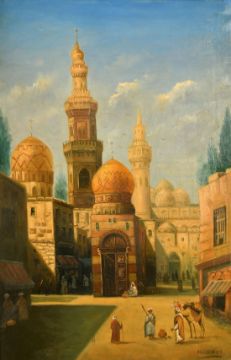 Henri Carnier / Karl Kaufmann (1843-1902), a pair of oil on canvas scenes of figures in a busy Eastern city square, signed, each 30" x 20" (76 x 51cm), (2), purchased from Mathaf Gallery.