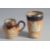 A ROYAL DOULTON STONEWARE BEAKER, 4.5ins high and a milk jug, 3.5ins high, both with silver rim (2).