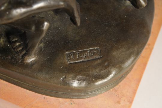 A BRONZE SCULPTURE, TWO NUDE MALE WRESTLERS.