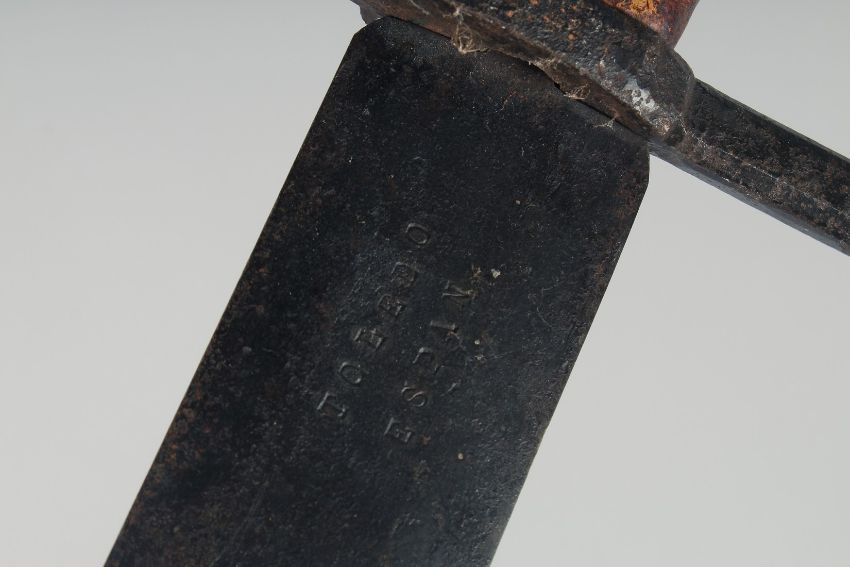 A LARGE HAND AND A HALF BROAD SWORD with cruciform hilt. Tolodo blade.
