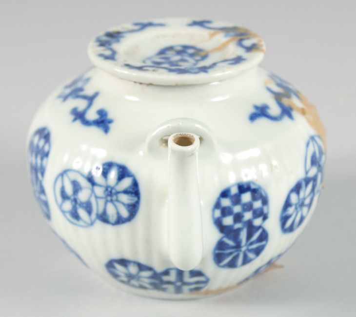 AN EARLY 20TH CENTURY BLUE AND WHITE PORCELAIN TEAPOT.