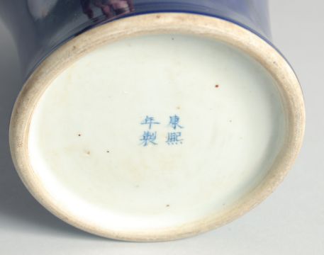 A CHINESE SACRIFICIAL BLUE GLAZE PORCELAIN MEIPING VASE, the base with four-character mark, 33cm high.