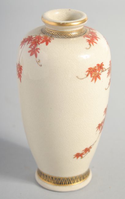 A SMALL JAPANESE SATSUMA VASE, decorated with maple branch and gilt highlights, 12.5cm high.