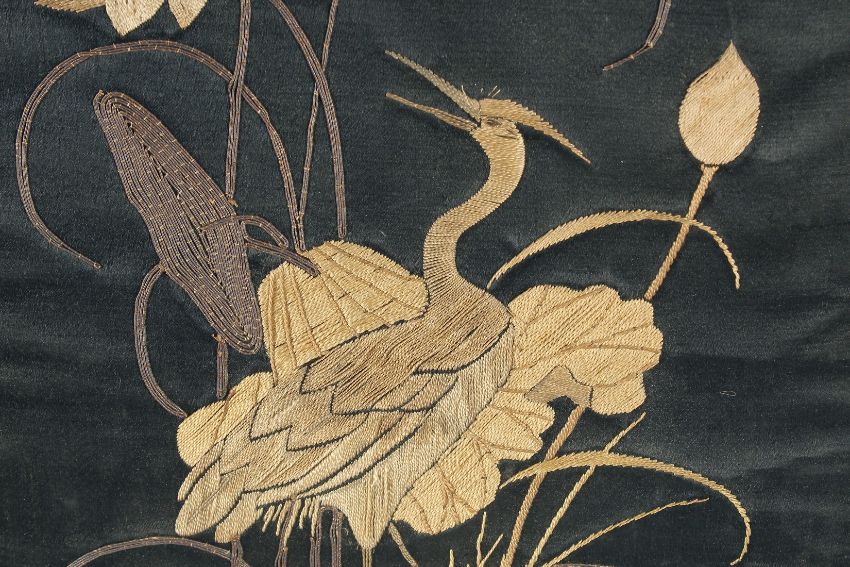 A CHINESE EMBROIDERED PICTURE PANEL, 81.5cm x 33.5cm.