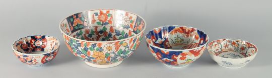 FOUR JAPANESE IMARI PORCELAIN BOWLS, largest 25cm diameter, (4).