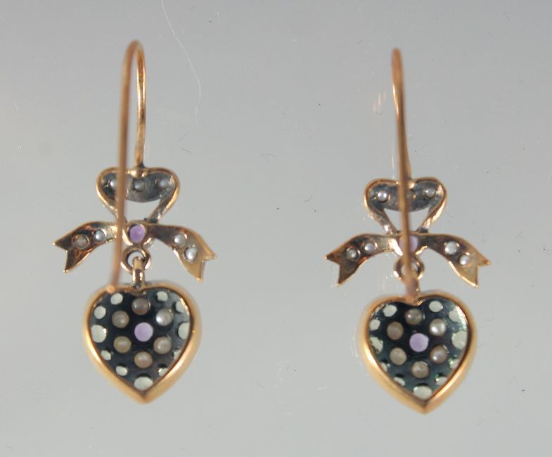 A GOOD PAIR OF 9CT GOLD SUFFRAGETTE HEART EARRINGS