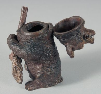 A COLD PAINTED BEAR MATCH HOLDER, 7 cm.