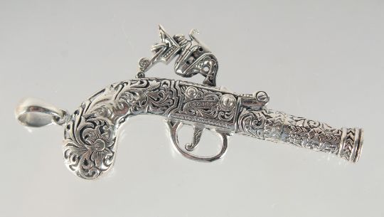 A SILVER PISTOL WHISTLE, 6 cm.