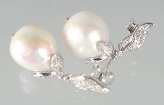A PAIR OF SILVER BAROQUE PEARL EARRINGS.