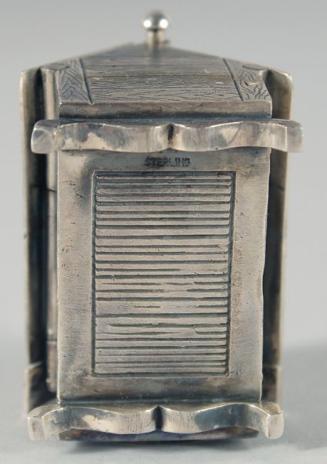 A NOVELTY SILVER DOG KENNEL VESTA, with enamel of a dog, 4.5 cm.