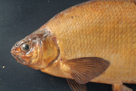 A LARGE TAXIDERMY FISH on a wooden plaque.