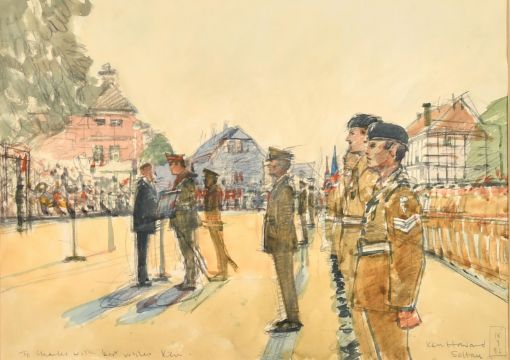 Ken Howard (1932-2022) British, 'Soltau', a military celebration, watercolour, dedicated, signed and dated, 10" x 14", (25.5x35.5cm).