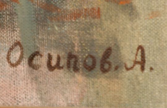 Alexander Osipov (b. 1946) Russian, a Moscow street scene at dusk, oil on canvas, signed, 18" x 21.5" (46 x 55cm).