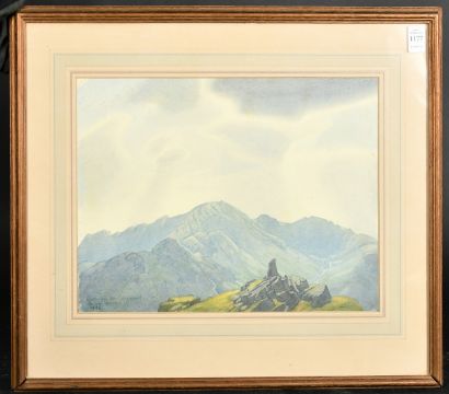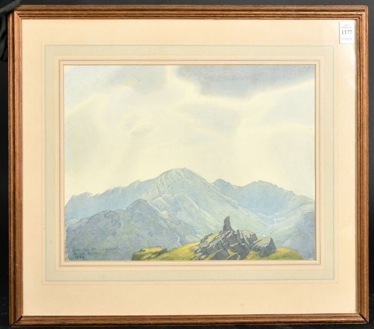 Delmar Harmood Banner (1896-1983) British, 'Wetherlam from Lingmoor', a view in the Lake District, watercolour, signed, inscribed and dated 1946, label verso, 11" x 15", (28x38cm).