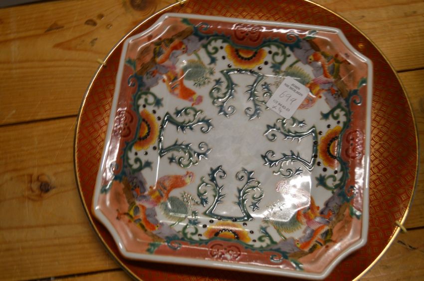 Two Chinese blue and white porcelain dishes and two other dishes.