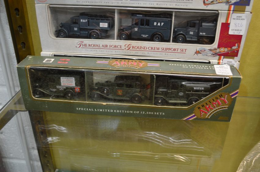 A collection of boxed military vehicles.