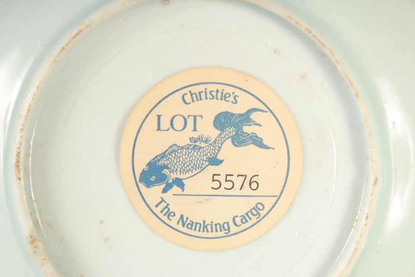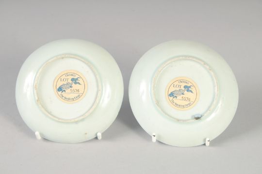 A PAIR OF NANKING CARGO BLUE AND WHITE SAUCERS, 10cm diameter.