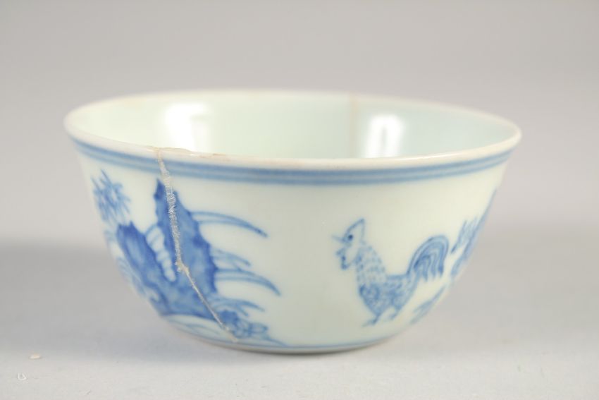 A CHINESE BLUE AND WHITE CHICKEN CUP, 8.5cm diameter.